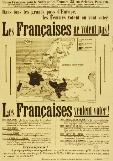 Las mujeres votan por primera vez durante las elecciones municipales del 29 de abril 1945 y en las elecciones a la Asamblea Constituyente el 21 de octubre de 1945. La Resistencia ayudó a cambiar el estatus de las mujeres en la sociedad de posguerra.