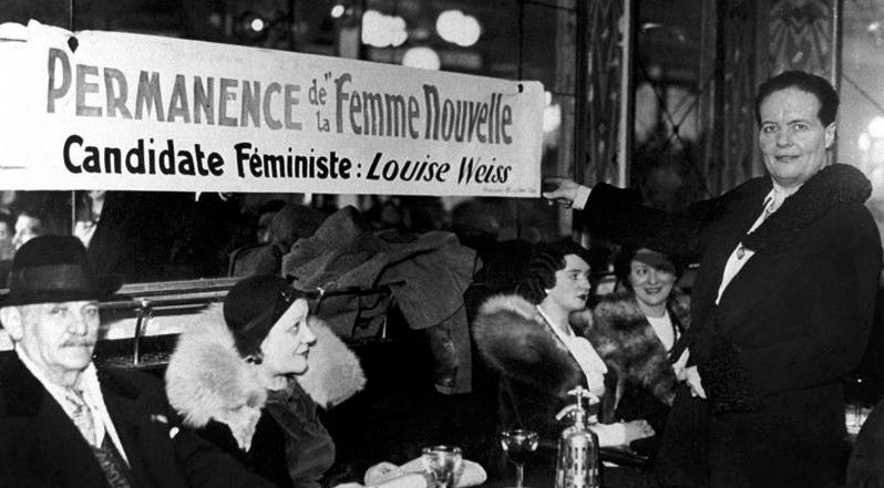 En la declaración del General de Gaulle a los movimientos de resistencia, en 1942, indica en la última estrofa, su voluntad de otorgar a las mujeres el derecho al voto.
